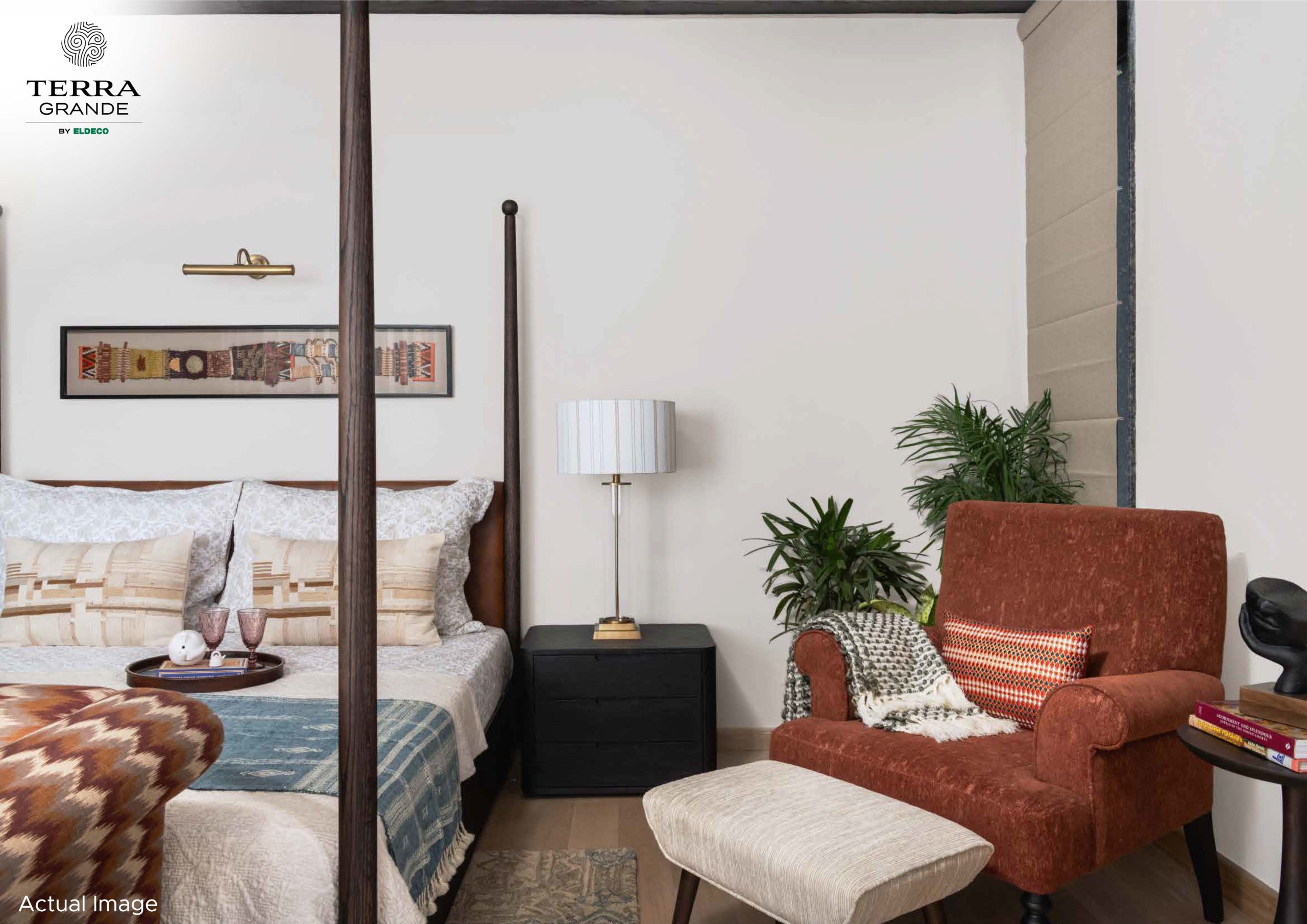 The master plan includes an array of communal luxuries: clubhouse, infinity pool, spa, walking trails, medical center, kids’ play area, library, fitness center, restaurants, multi-cuisine rooftop dining, barbeque pods, fruit orchards, and convenience shopping.